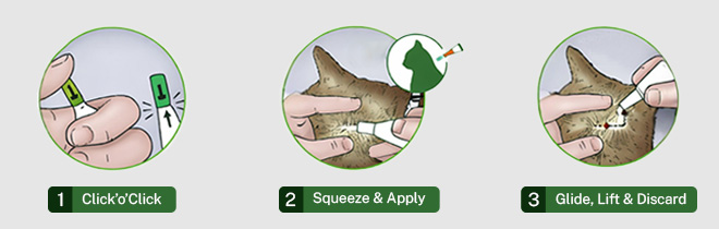 2. Squeeze & Apply: Once you have opened the tube, the next step is to part the fur on the back of the cat’s neck, just above the shoulder blades, until the skin is visible. Now, hold the parted fur with one hand, place the tip of the tube on the visible area and squeeze it 3 to 4 times in one spot with another hand till the entire tube is empty. The selected area is a safe spot as it prevents the cat from licking and lets the liquid get absorbed completely.
