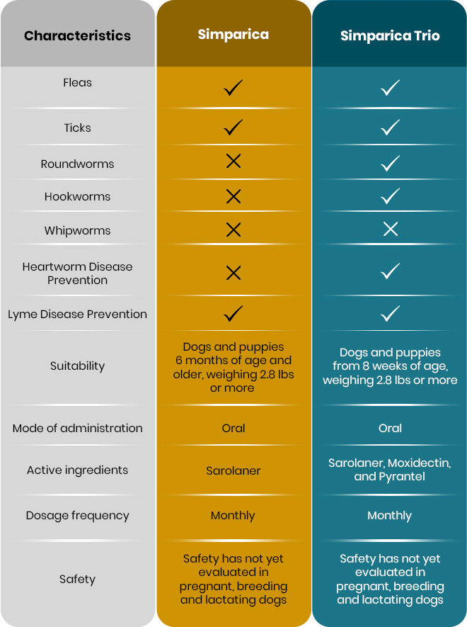 Apart from the similarities, Simparica and Simparica Trio also possess certain differences, which are mentioned below: